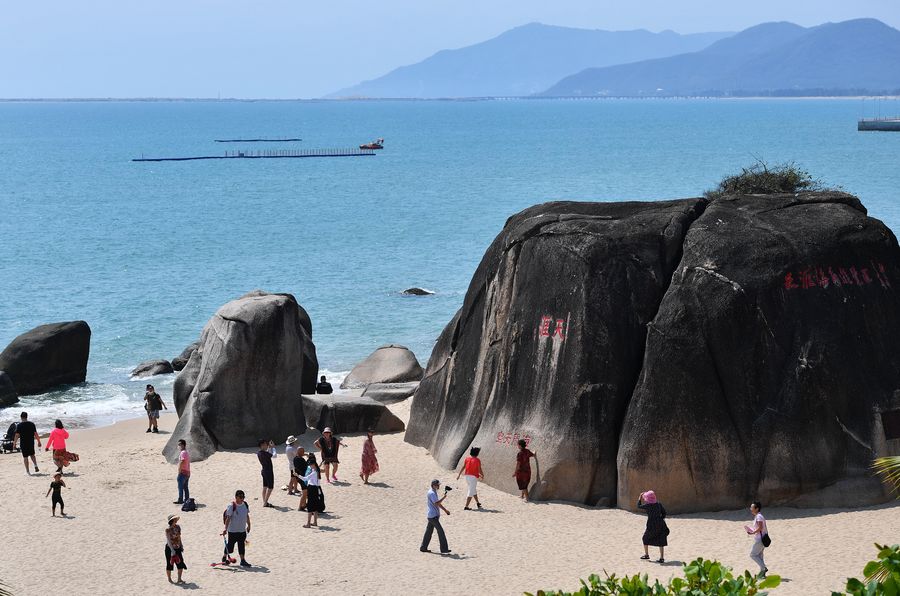 Tourists visit the scenic spot of Tianyahaijiao, or Ends of the Earth, in Sanya, South China's Hainan province, on March 11, 2020. [Photo/Xinhua]