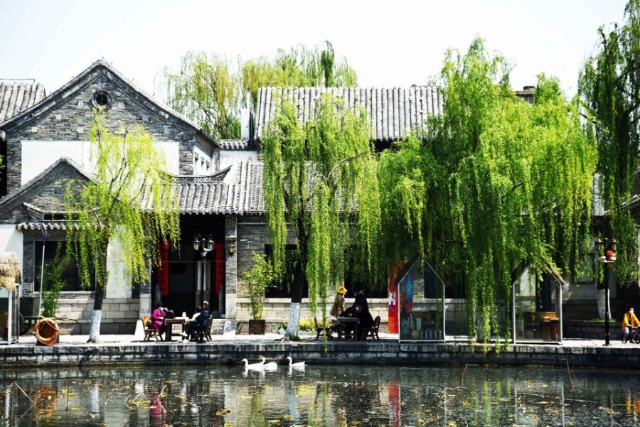 Tourists visit the Baihuazhou Historical and Cultural Block in Jinan, East China's Shandong province, on April 13, 2020. [Photo/Xinhua]