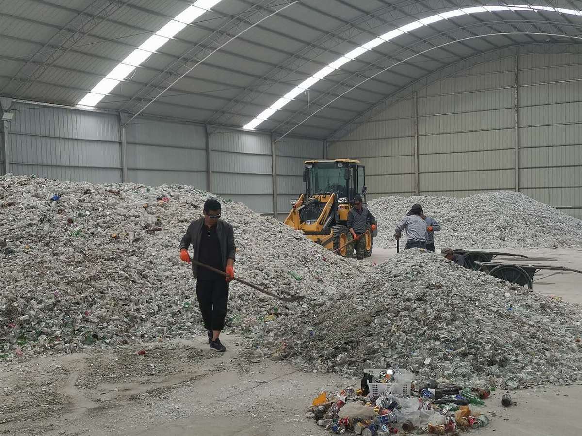 Workers sort out discarded glass from debris. [Photo by Du Xianwei/for chinadaily.com.cn]