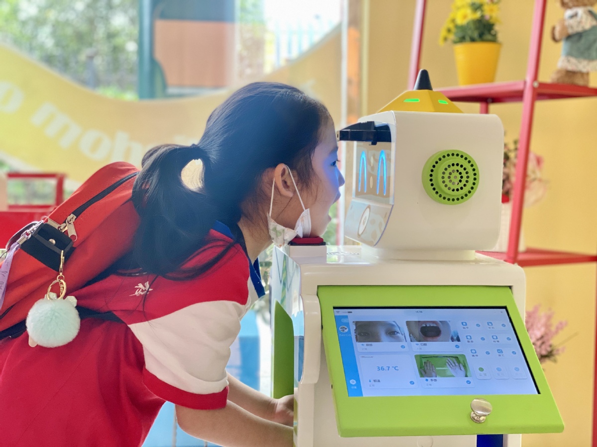 Manufactured by Suzhou Walklake Smart System Co Ltd, a Jiangsu-based technology solution provider and robot manufacturer, the preschool screening robots can effectively inspect children's body temperatures, eyes, hands and mouths in several seconds by using precise medical-grade sensors.