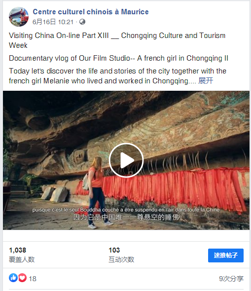 The China Cultural Center in Mauritius launched Chongqing culture and tourism week from June 15-24 on its website and social media platforms. [Photo provided to Chinaculture.org]