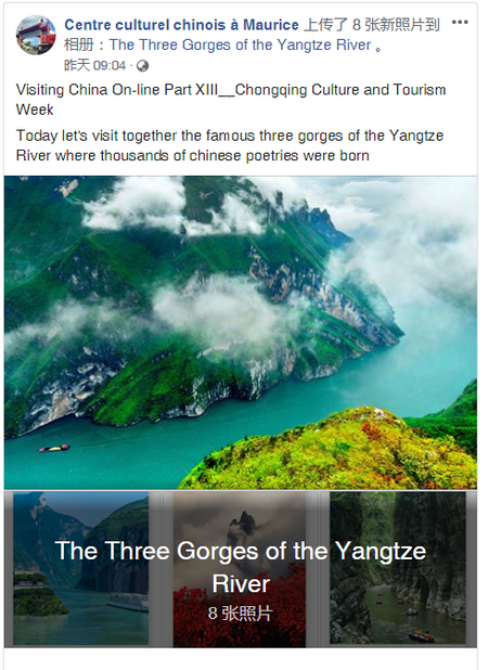 The China Cultural Center in Mauritius launched Chongqing culture and tourism week from June 15-24 on its website and social media platforms. [Photo provided to Chinaculture.org]