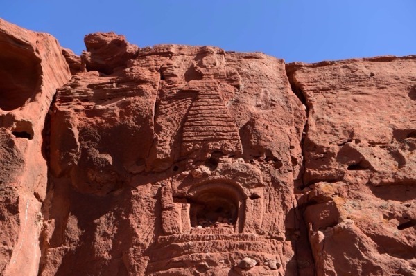 Photo taken on Oct 18, 2019 shows the relief of the Arjai Grottoes of Otog Banner in Ordos, North China's Inner Mongolia autonomous region.[Photo/Xinhua]