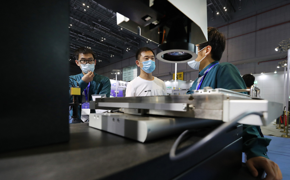 People visit the China Machine Tool Exhibition at the National Exhibition and Convention Center (NECC) in Shanghai, July 1, 2020. [Photo/Xinhua]