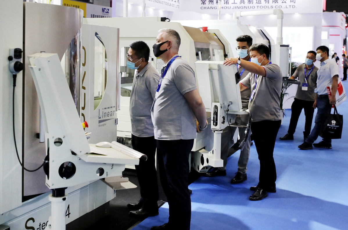 People visit the China Machine Tool Exhibition at the National Exhibition and Convention Center (NECC) in Shanghai, July 1, 2020. [Photo/Xinhua]