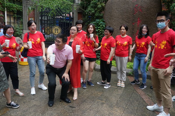At the gate of a test site at Shanghai Jincai High School, some teachers and school leaders from the Shanghai Experimental School wore red T-shirts - a color that represents good luck and prosperity in China – to show their support to the students.[Photos by Gao Erqiang / chinadaily.com.cn]