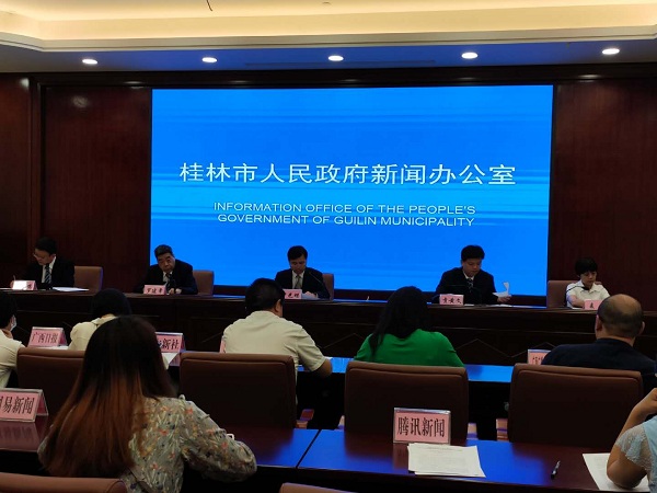 A press conference was held in Lingui district, Guilin, Guangxi Zhuang autonomous region on July 8, to outline the work and construction progress of Guilin's efforts to build itself into an international tourist resort.