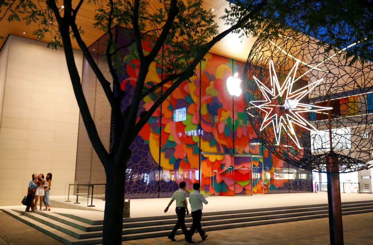 People walk past the new Apple flagship store in Beijing, on July 14, 2020. [Photo/Agencies]