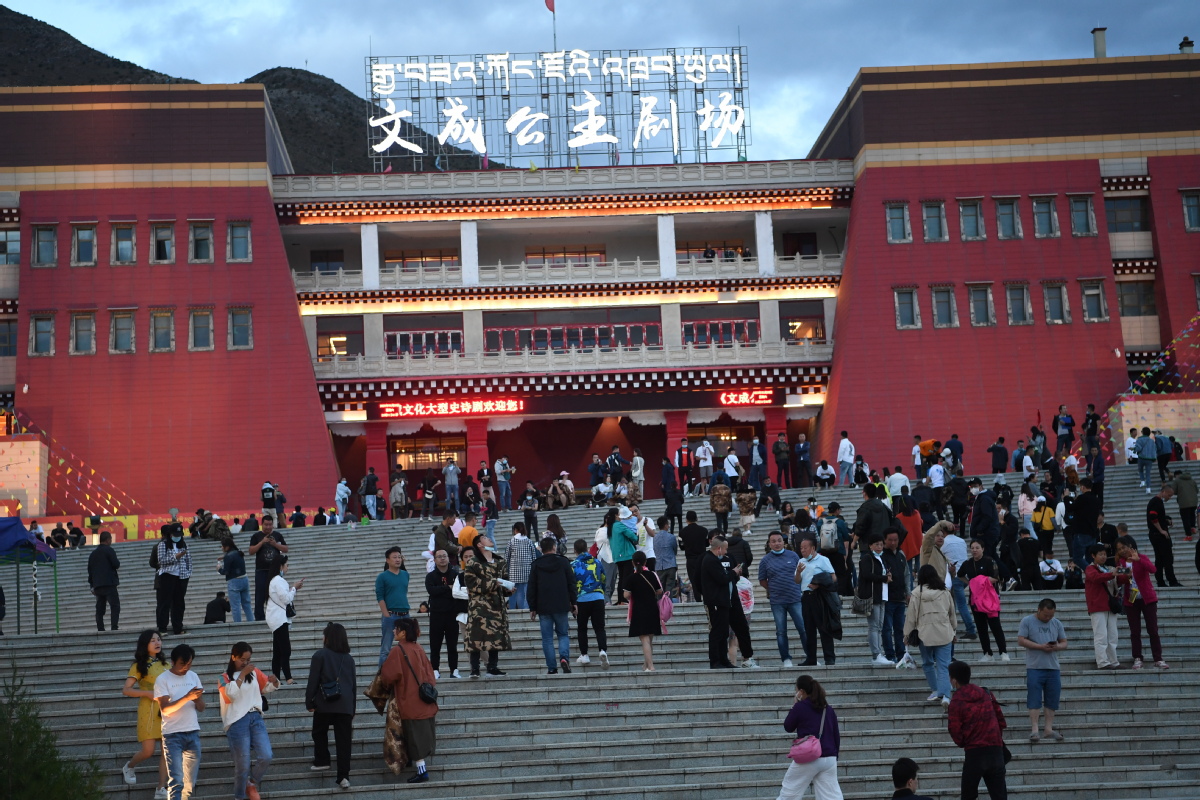 Visitors head to the Wencheng Princess Opera Theater in Lhasa to watch the opera