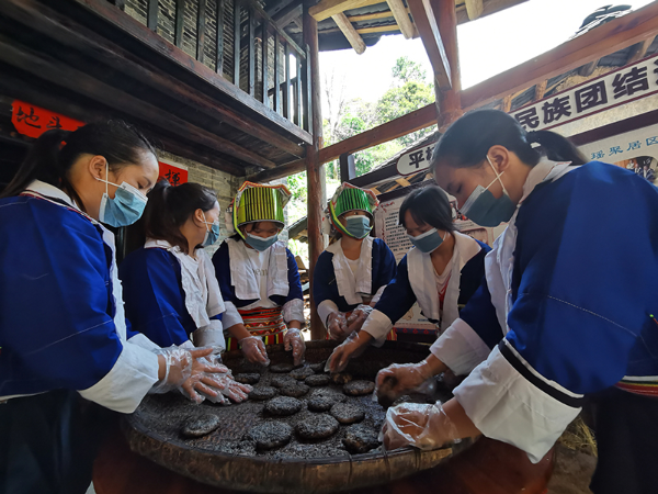 Villagers of Yao ethnic group in Dachong are marching toward prosperity thanks to making full use of traditional craftsmanship and local resources such as tea planting and processing. [Photo by Shi Ruipeng/China Daily]