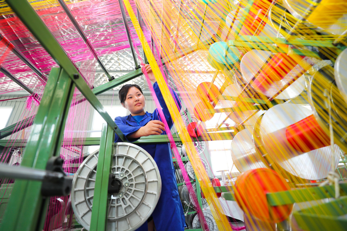 An employee works on the production line of a plastic product maker in Lianyungang, Jiangsu province. [Photo/XINHUA]