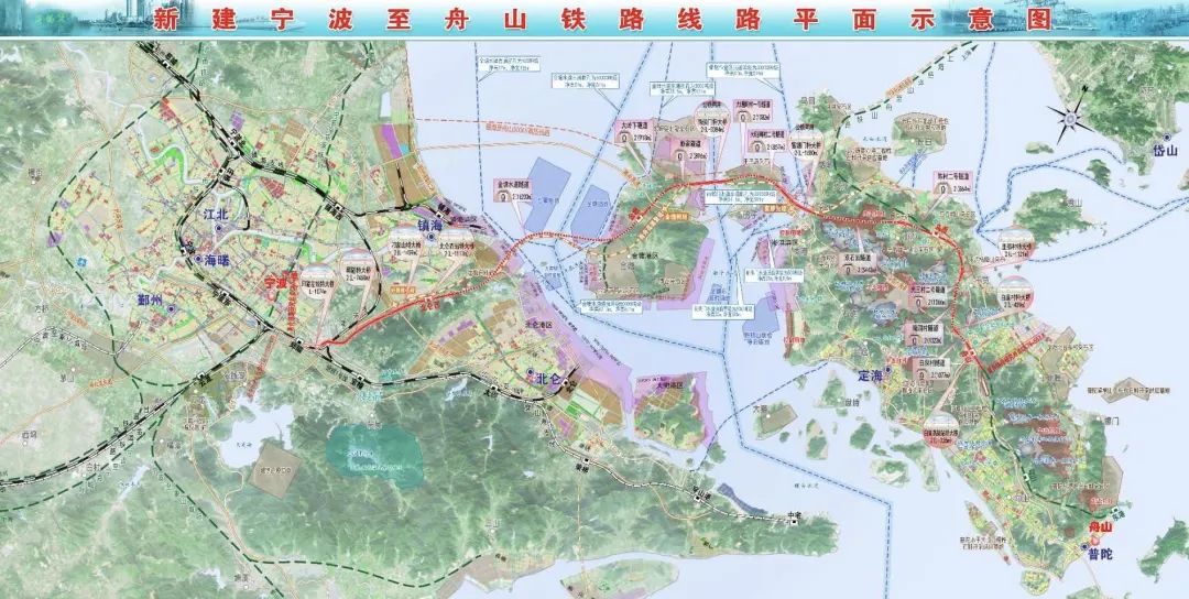 The map of the to-be-built Ningbo-Zhoushan railway with an undersea tunnel shows the route between Ningbo and Zhoushan. [Photo provided to chinadaily.com.cn]