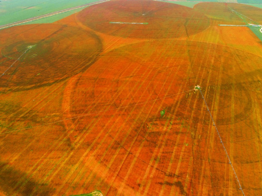 An aerial photo of a wheat field ready for harvest at Shengyijindi Farm in Taonan, Jilin province. [Photo by Qiu Huining/for chinadaily.com.cn]
