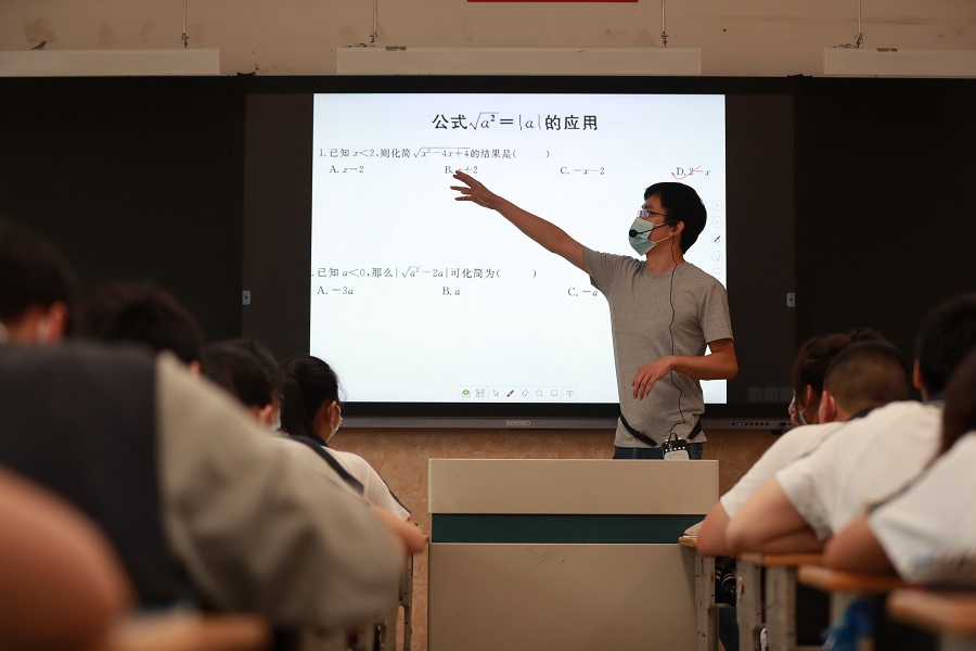 A teacher takes class at Hubei Shuiguohu No 1 Middle School in Wuhan, Central China's Hubei province, on Aug 10, 2020. [Photo by Zhao Jun/chinadaily.com.cn]