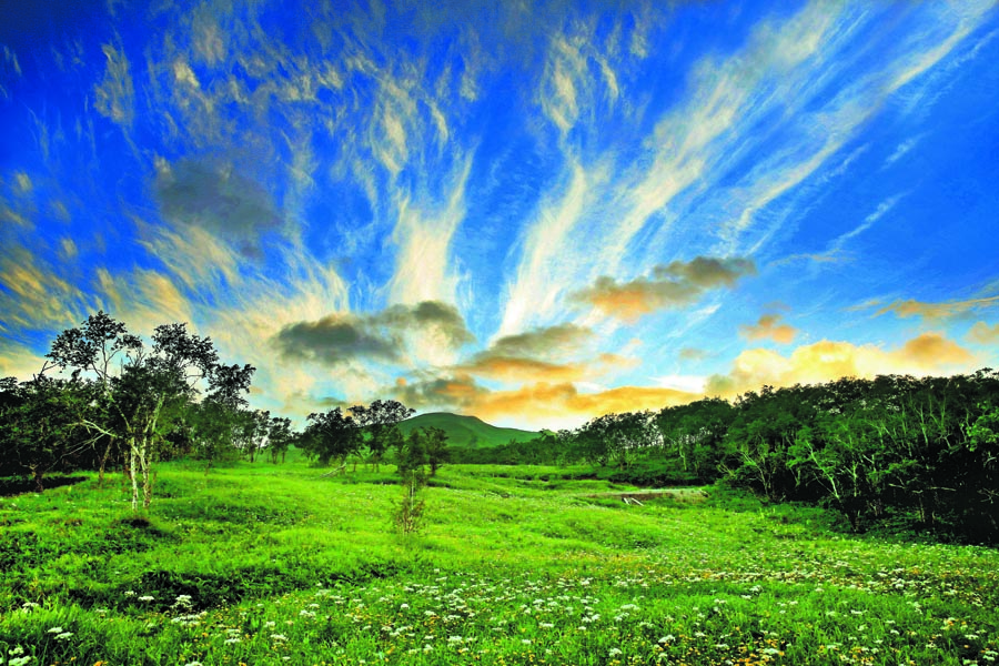 The famed Changbai Mountain is located on the borders of China and the Democratic People's Republic of Korea. At different altitudes, the mountain gives off different colors during the four seasons of the year. Inside the reserve, Tianchi Lake (or Heaven Lake), a deep-blue volcanic crater lake, is one of China’s most stunning natural wonders.