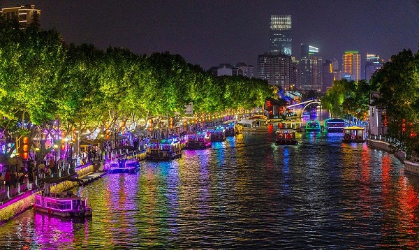 At night in Wuxi, cruise boats shuttle back and forth on the Grand Canal, diners savor all kinds of dishes, and tourists and locals flock to its central Qingming Bridge Scenic Area as city life returns to its normal pace.