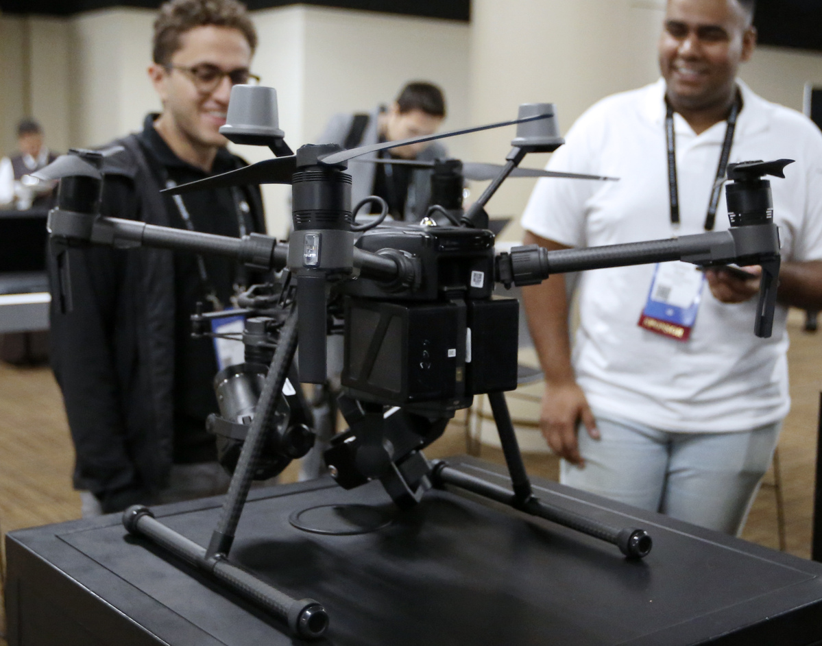 Visitors check out a drone during a high-tech exhibition held by Shenzhen-based drone maker DJI in Los Angeles in September. [Photo/Xinhua]