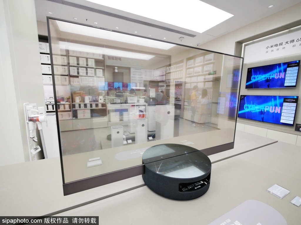 Mi's transparent TV goes on sale at a Xiaomi store in Guangzhou, South China's Guangdong province, on Aug 16. The OLED 55-inch TV is priced at 49,999 yuan ($7,224). [Photo/Sipa]