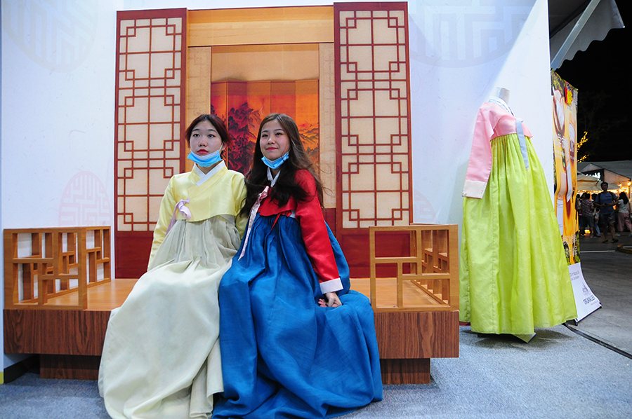 On Saturday, visitors were encouraged to try on hanbok and take photos against the background of a traditional Korean home.