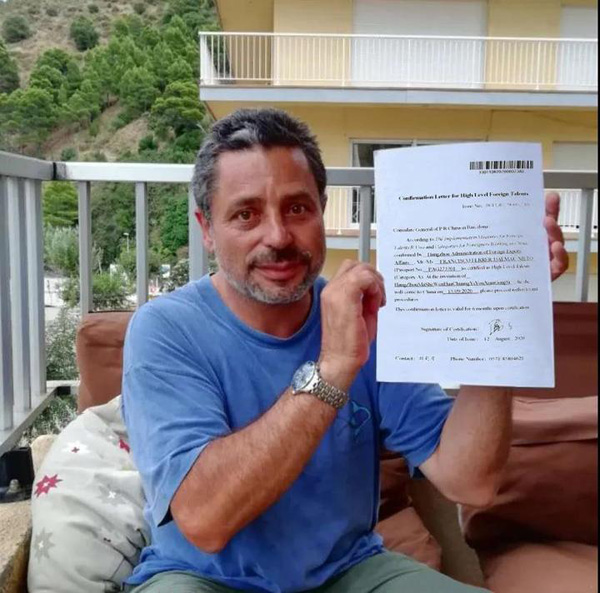 Francisco, a Spanish automobile designer and technological developer, was the first to receive the confirmation letter. Francisco was a winner of the 2014 West Lake Friendship Award. Established by the Zhejiang government, the award is conferred biennially in recognition of outstanding contributions to economic and social developments and personnel training made by foreign experts.