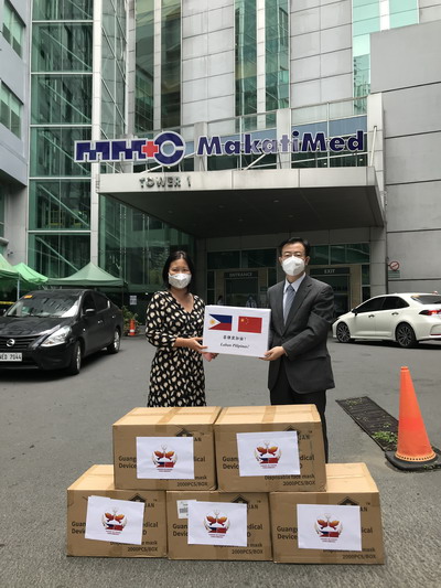 On 14 August, the Chinese Embassy in the Philippines donated 1 million pesos in cash and some PPEs to the Philippine medical frontliners as a token of appreciation and support for their hard work in fighting against COVID-19.