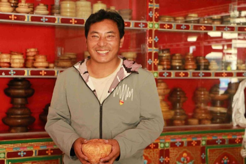 Finally he thought of the Gyatsa county in Lhokha city, which is very close to Nang county, where Tangbumba village is located. It has a long history of making wooden bowls. So he thought they too could make wooden bowls. So Pema Tobgye immediately went to Lhokha city to explore the "bowl business".