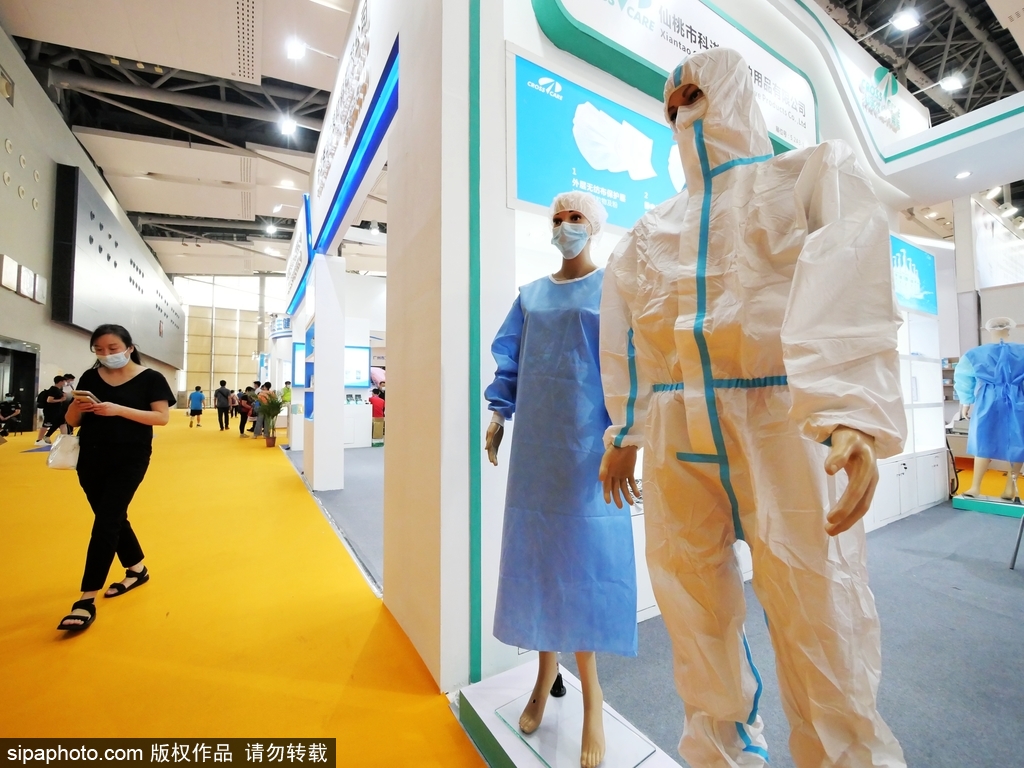 Protective clothing is displayed at the 28th Guangzhou Expo Medical and Health Industry Exhibition in Guangzhou, Guangdong province, on Aug 29, 2020. [Photo/Sipa]