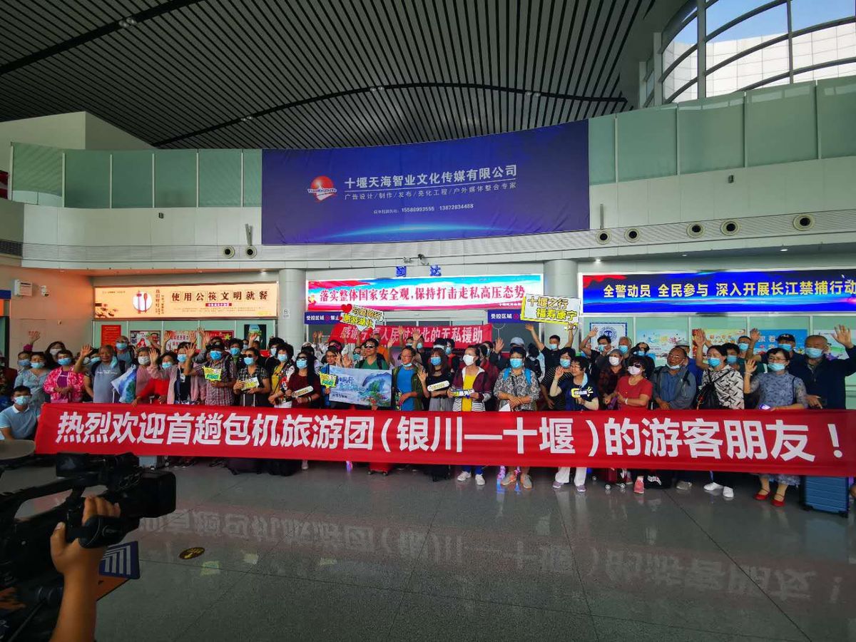 A chartered flight carrying 102 tourists from the Ningxia Hui autonomous region lands at Shiyan Wudangshan Airport in Hubei province on Monday. [Photo provided to chinadaily.com.cn]