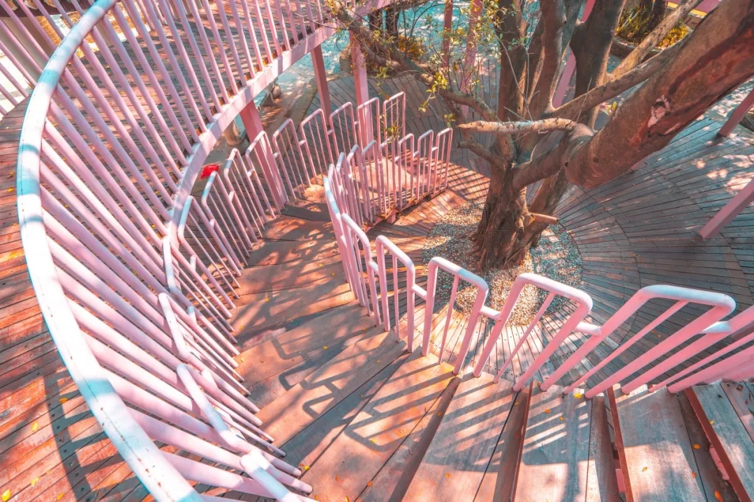 Decorated in pink, Xianliao village appears like a sort of fairytale land. [Photo by Chuanxingzhe/for chinadaily.com.cn]