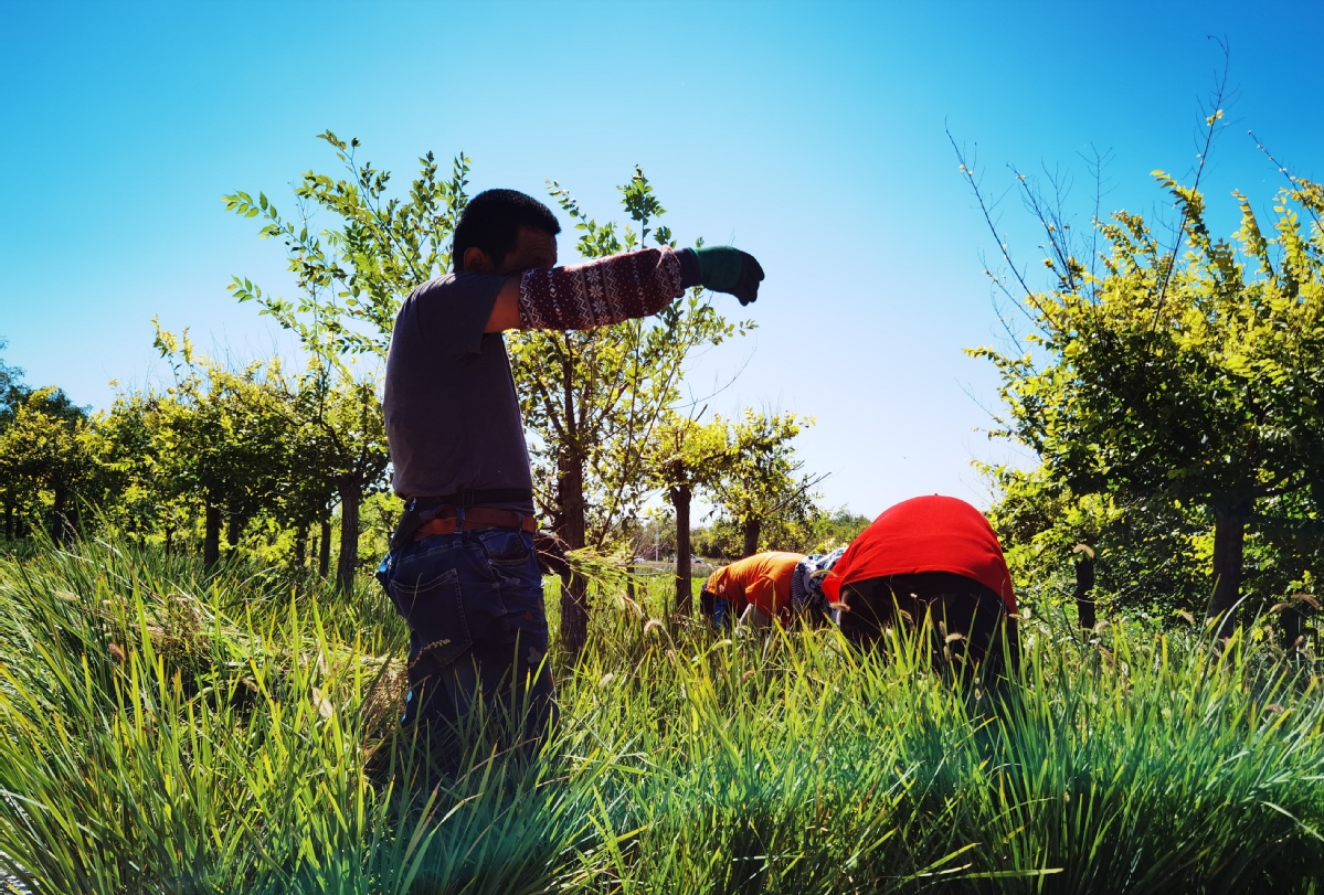 People work in newly renovated grassland in the Green Ecological Barrier. [Photo by Dai Yuanyuan/chinadaily.com.cn]