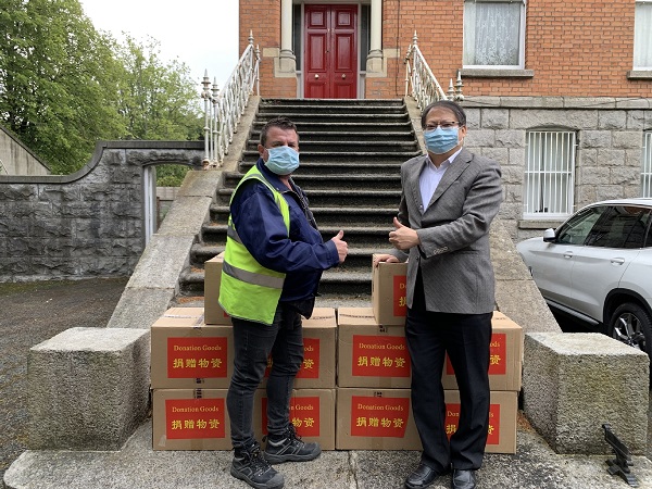 Medical workers in Dublin, Ireland received medical supplies from Changsha, Hunan province. [Photo provided to chinadaily.com.cn]