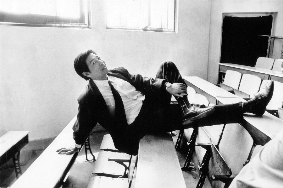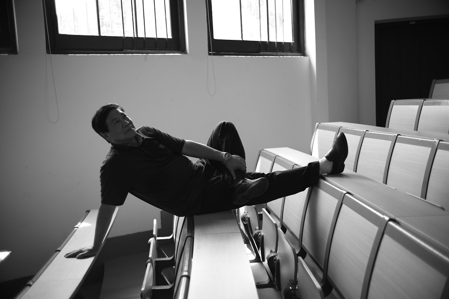 Above: After graduation exams in 1993, Song Zhenjiang relaxes on chairs. Below: Song Zhenjiang poses in the same classroom 30 years later. [Photos by Wang Jingchun/Ultimate Vision]