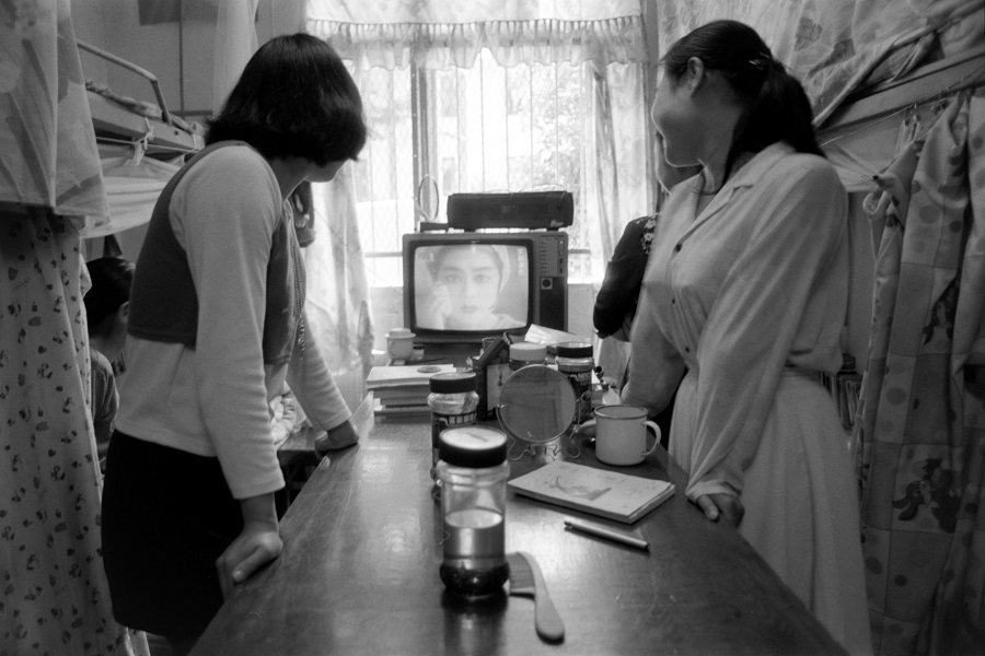 Students enrolled in 1994 class of journalism school watch TV in their room in a dormitory building of Wuhan University. Each class had one TV set and it rotated from one to another room once a week. [Photo by Wang Jingchun/Ultimate Vision]