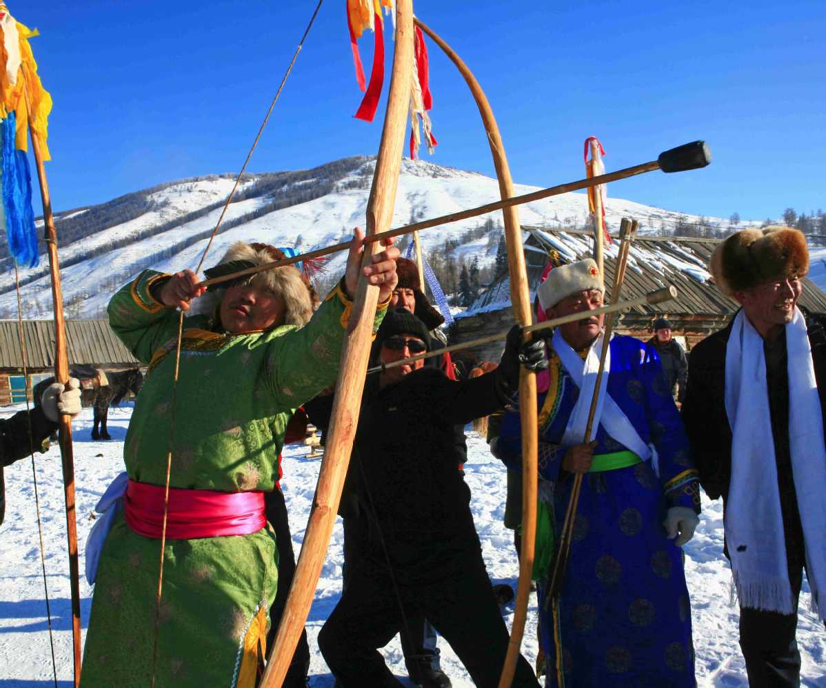 An archery competition presented by Tuvan people in Xinjiang. [Photo by Mao Weihua/chinadaily.com.cn]