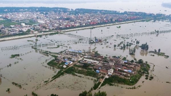 An aerial view of the Mengwa Flood Diversion Area in Funan county in East China's Anhui province on July 22, 2020. [Photo by Guo Haiyang/provided to chinadaily.com.cn]