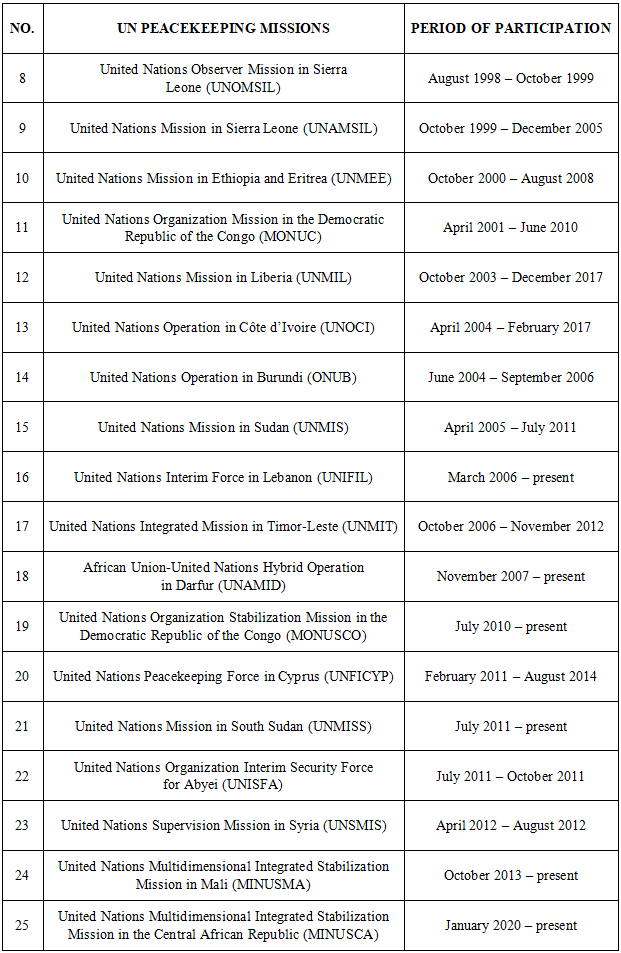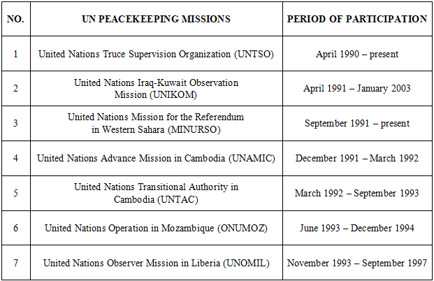 In April 1990, China's armed forces dispatched five military observers to UNTSO and embarked on a new voyage as a participant in the UNPKOs.