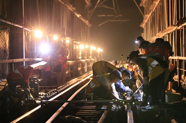 To ensure safe railway operations, crews of China Railway Chengdu Group have made use of the night recently to replace damaged rails and correct other safety hazards on the 605 kilometersection.