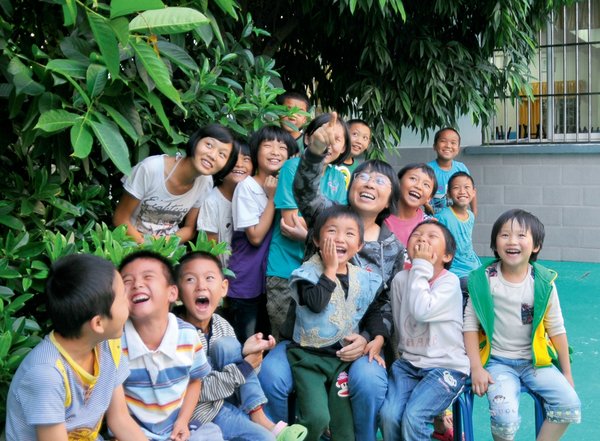 Zhang Guimei accompanies a group of orphans at the Huaping Children's Home in Huaping county, Lijiang city, southwest China's Yunnan province. [Yunnan Women's Federation]