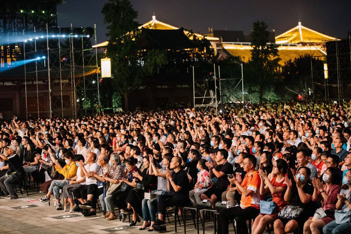 Xi'an Symphony Orchestra gave an online outdoor concert near the iconic Big Wild Goose Pagoda in Xi'an, Shaanxi province on Sept 19, which attracted over 5.6 million viewers. [Photo provided to China Daily]