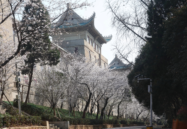 Cherry blossoms create a lovely scene at Wuhan University, on March 17, 2020. [Photo by Chen Liang/for China Daily]