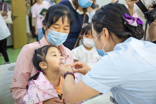 China's first domestically made live attenuated nasal spray flu vaccine was used for the first time in public on Sept 15 in Xi'an, Shaanxi province. It improves the efficiency and speed of influenza vaccination. And there's no needle.