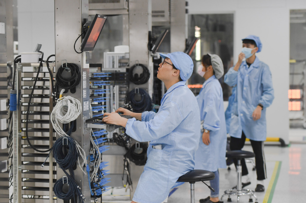 Employees make digital internet products at a high-tech company in Fuzhou, East China's Fujian province, on Sept 22, 2020. [Photo/Xinhua]