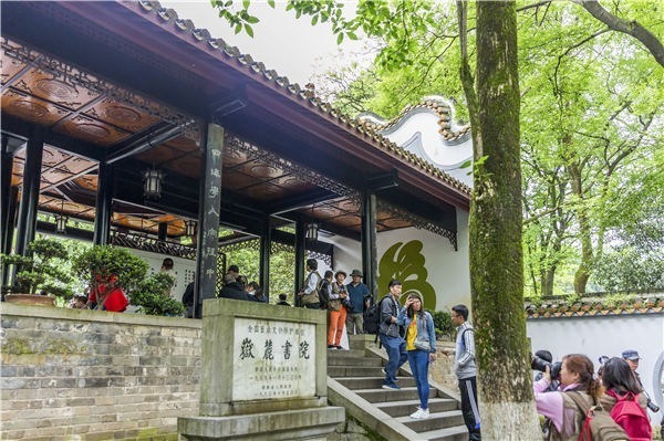Tourists visit Yuelu Academy, an education facility with a history of more than 1,000 years, in Changsha, Hunan province, in April 2019. [Photo by Liu Zhiyong/For China Daily]