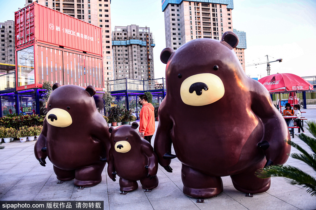 Bear sculptures are seen in the container town in Shenyang, Northeast China's Liaoning province, Sept 20, 2020. [Photo/Sipa]