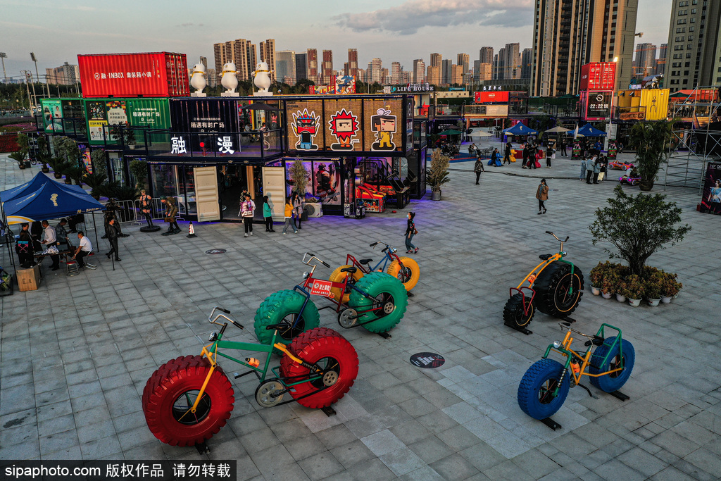 Bicycle sculptures are seen in the container town in Shenyang, Northeast China's Liaoning province, Sept 20, 2020. [Photo/Sipa]
