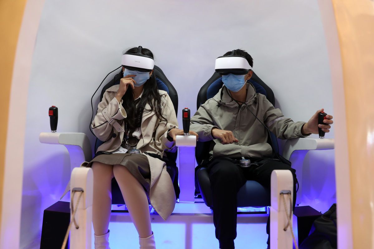 Visitors watch VR movies supported by 5G at the China International Information Communication Technology Exhibition 2020 in Beijing, Oct 14, 2020. [Photo by Wang Zhuangfei/chinadaily.com.cn]