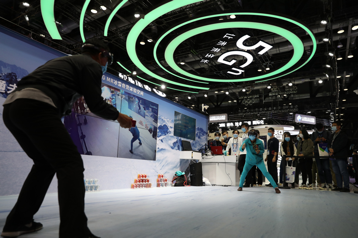 Visitors experience virtual winter sports at the China International Information Communication Technology Exhibition 2020 in Beijing, Oct 14, 2020. [Photo by Wang Zhuangfei/chinadaily.com.cn]
