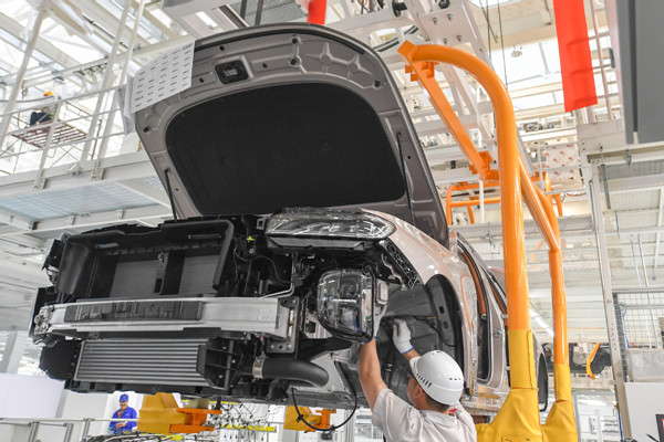 An FAW employee works on an assembly line in Changchun, Jilin province, in September. [Photo/Xinhua]