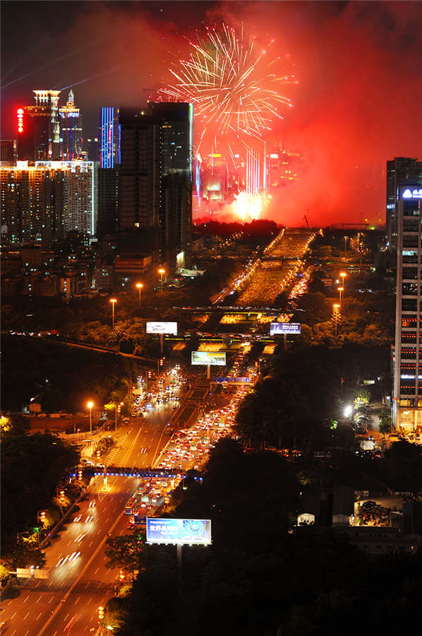 In 2010, fireworks liven up the party held to celebrate the 30th anniversary of the establishment of the Shenzhen Special Economic Zone. [Photo by Zhou Shunbin/cpanet.org.cn]
