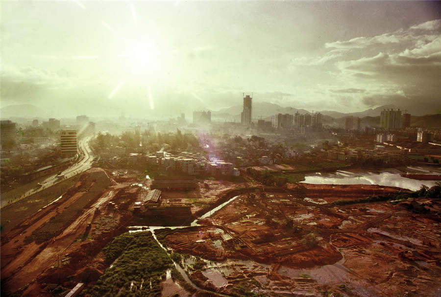 The sun bursts through the clouds above the Caiwuwei area in Shenzhen's Luohu district in 1984. The ground was just broken for construction and a new town was going to rise. [Photo by Zhou Shunbin/cpanet.org.cn]